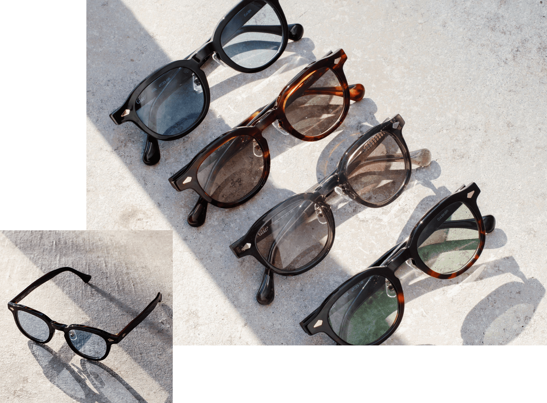 少し小ぶりなタウンユースモデルに、ライトカラーレンズを採用。フロントはシンプルに、テンプルにメタルパーツをあしらうことでサイドの印象にアクセントをプラス。