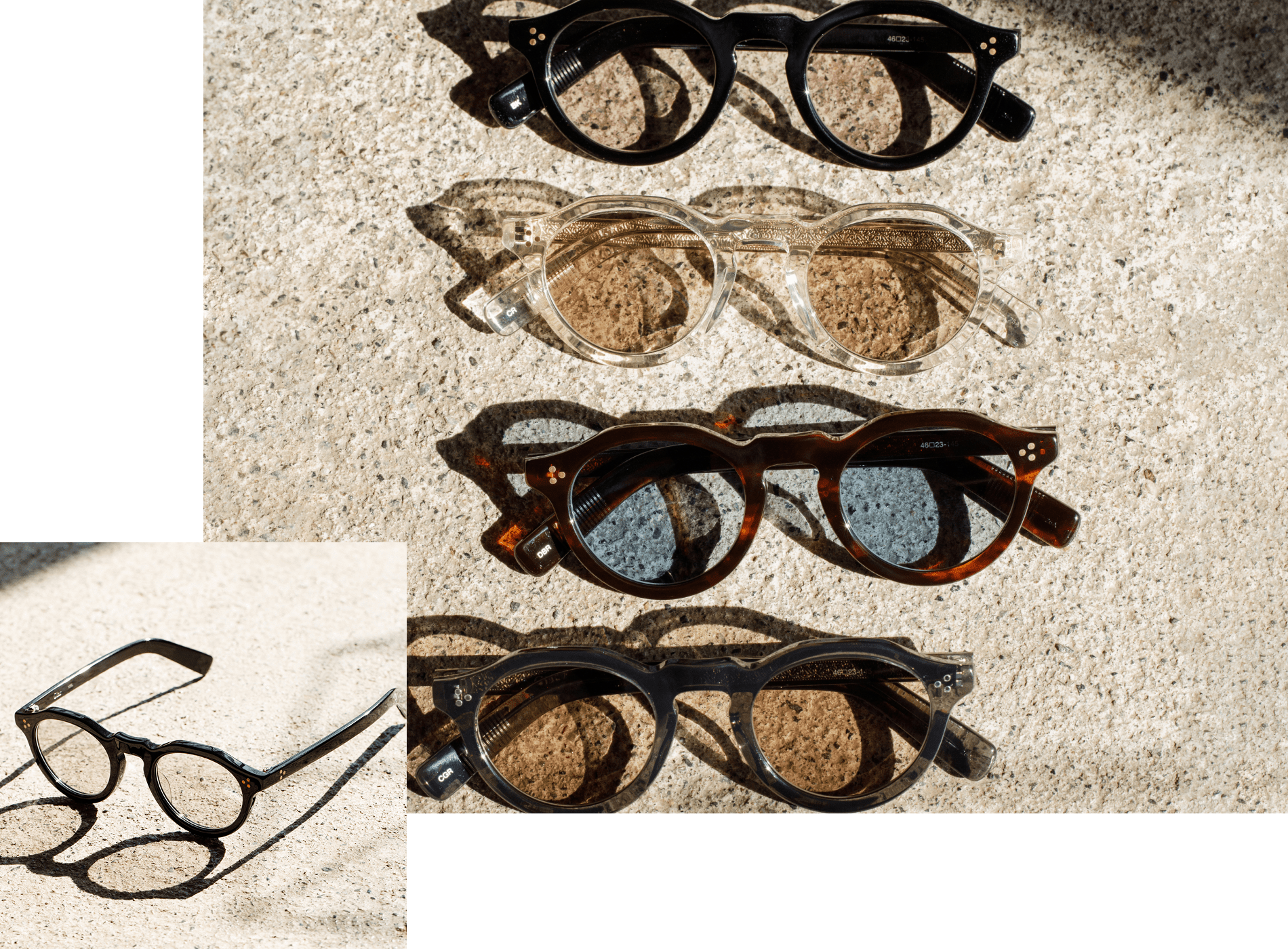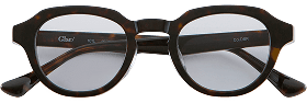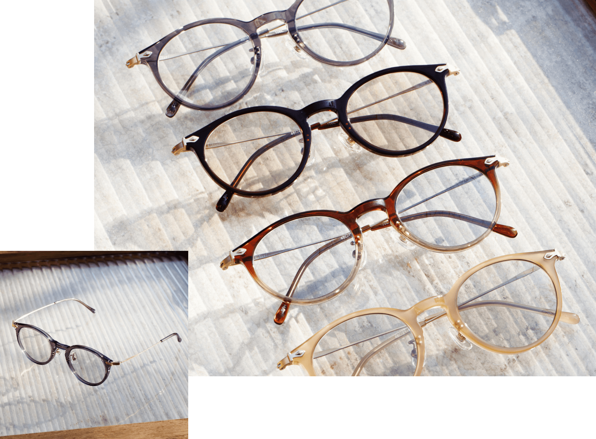 フロントとテンプルで素材の異なるコンビネーションフレームに、ライトカラーレンズを採用。すっきりとした細身のフロントに華奢なラインのテンプルを組み合わせ、見る角度によって印象の違いを楽しめる仕上がりに。