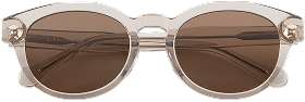 トレンドデザインのクラウンパント型のフレームに、ライトカラーレンズを採用。アクセントとして3ピンのスタッツをフロントにあしらい、テンプルの芯の部分に彫金を施すことで、サイドからも魅せるサングラスに。