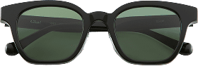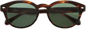 日差しをしっかりガードする大ぶりなモデルに、ダークカラーレンズを採用。フロントのメタルパーツと丸みのあるシェイプとのバランスが、エレガントな雰囲気に。