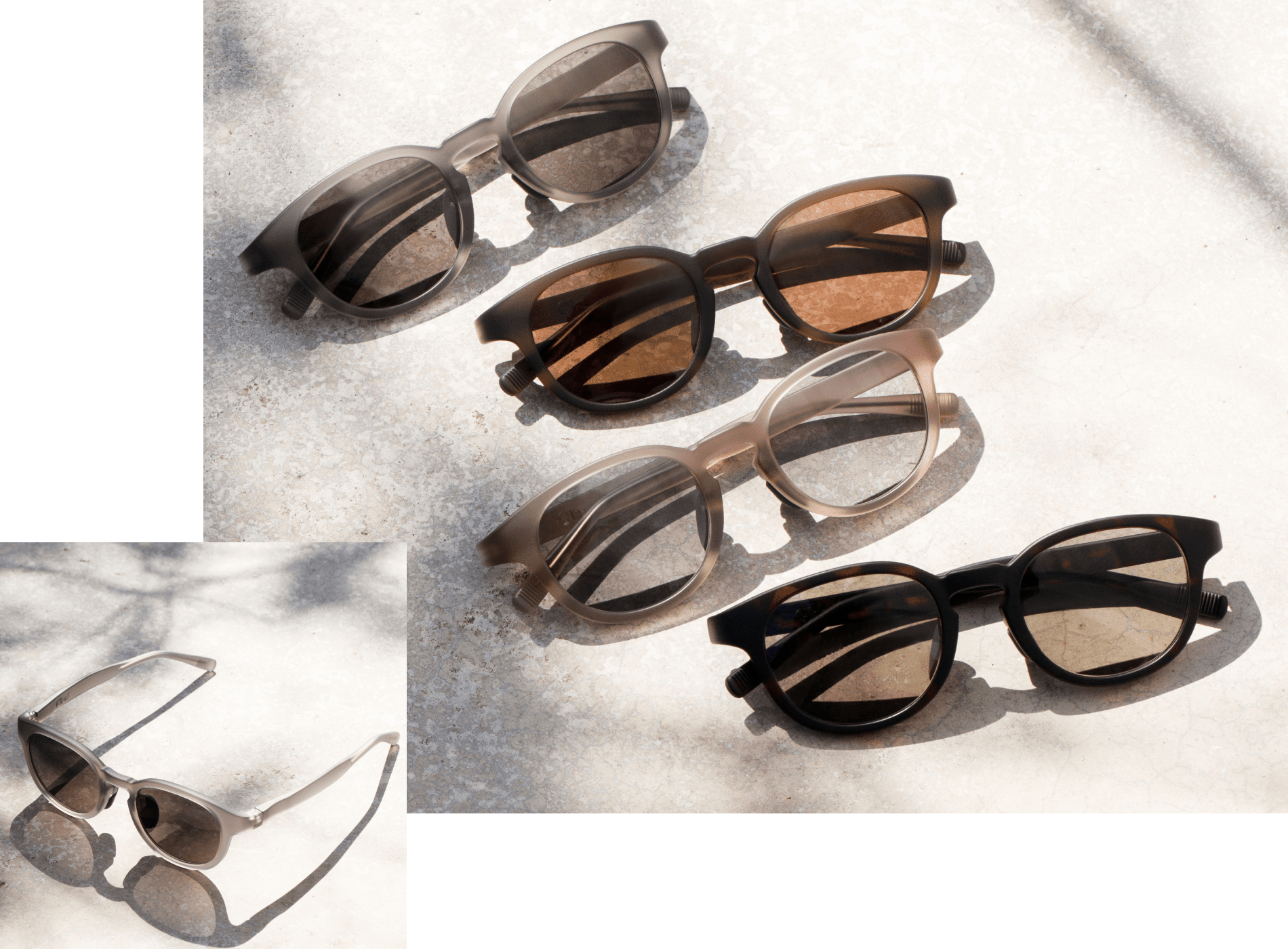 マットカラーのフレームに、ダークカラーレンズを採用。軽やかでスポーティーなデザインとカジュアルで落ち着いた質感のマットカラーにより、程よい存在感に。