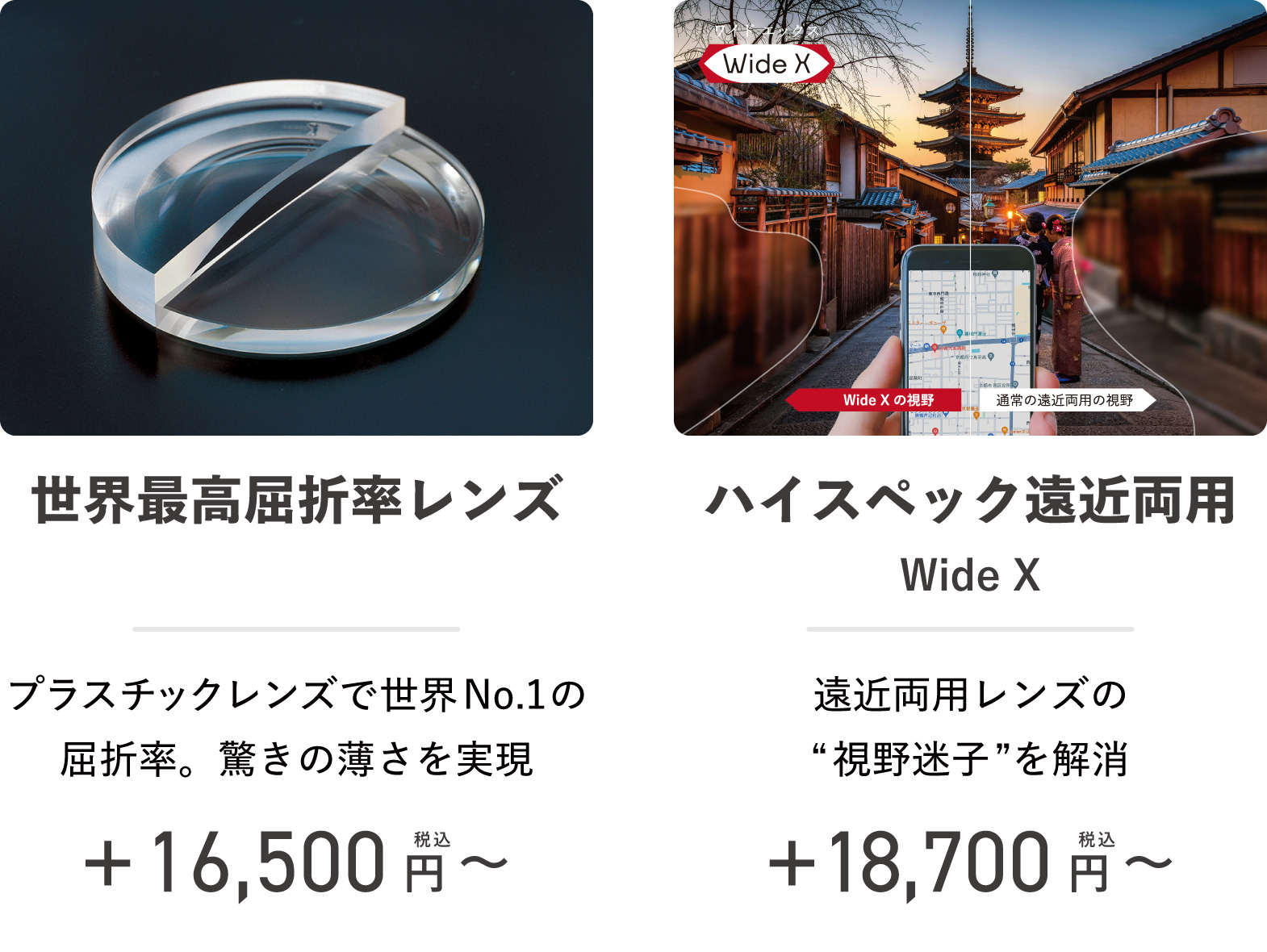 標準レンズの他にも、お客様のご希望やライフスタイルに合わせてオプションをご用意しております。