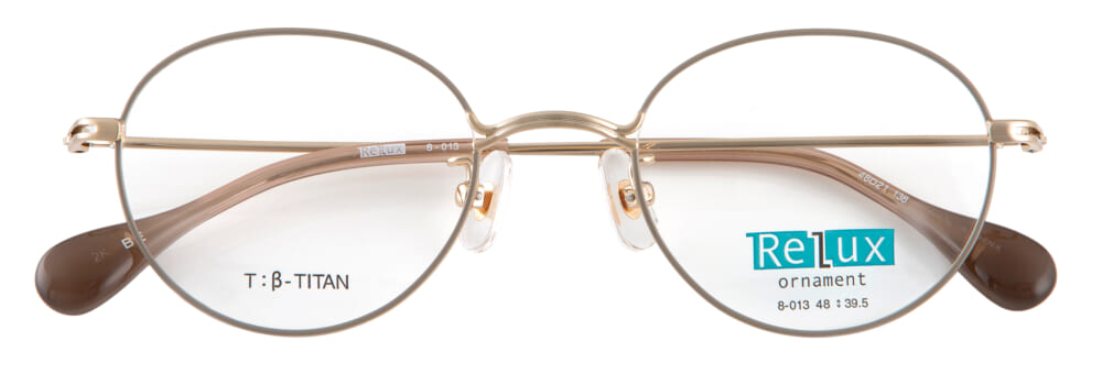 「8-013」は全体的にころんとまるいかたちが印象的なフレーム。ぽってりとやや大きめにデザインされたつる先端がかわいらしく、またかけた時のフィット感にも貢献します。