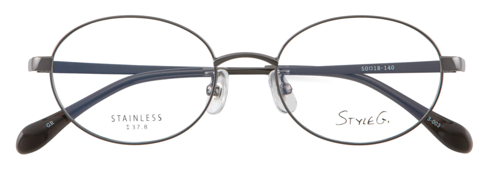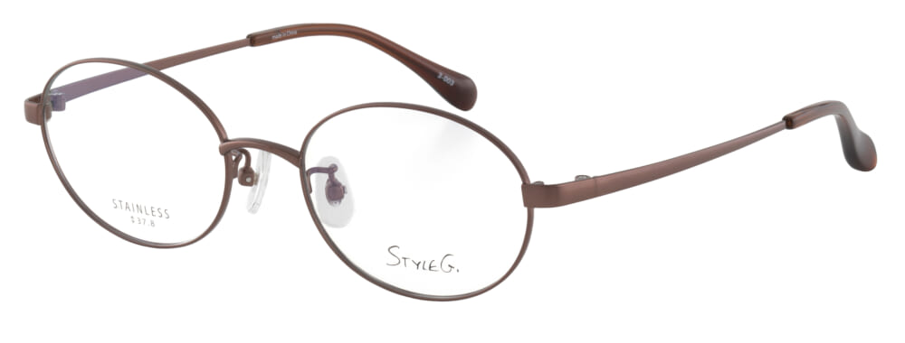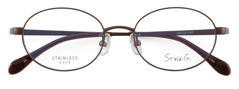 「3-003」は、女性に人気のオーバルタイプを採用したカジュアルフレーム。日常づかいしやすい落ち着いたカラーリングを採用しています。