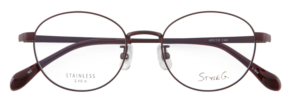 「3-004」は、人気のボストンタイプを採用したカジュアルフレーム。ユニセックスで日常づかいしやすい落ち着いたカラーリングを採用しています。