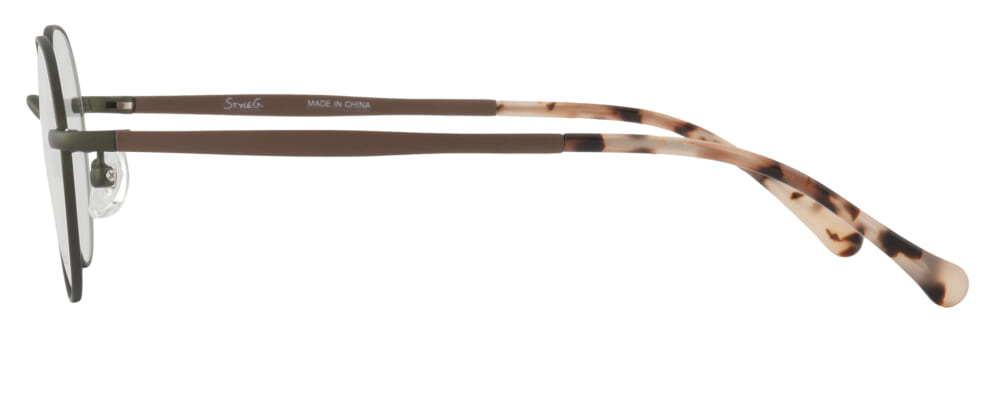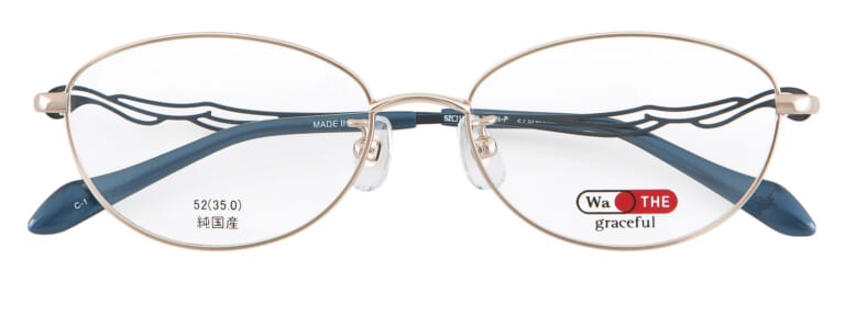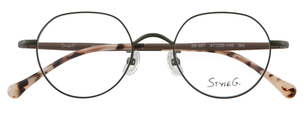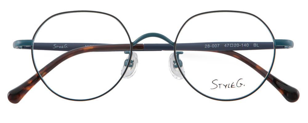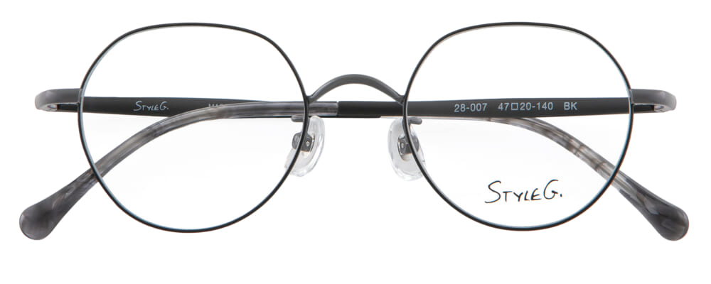 「28-007」は、クラウンパント型を採用。クラウンパントとは、リム(レンズ周りのフレーム)の上部が直線上にカットされ、下部は丸みのあるデザインのフレームです。上部がシャープな印象をあたえ、下部の丸みで柔らかい印象を与えるのが魅力です。