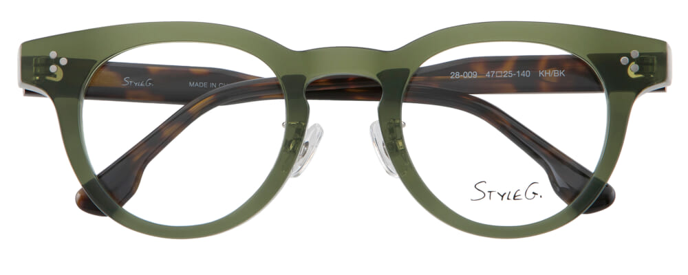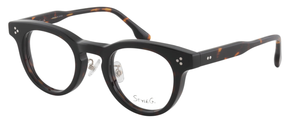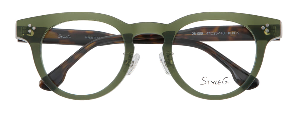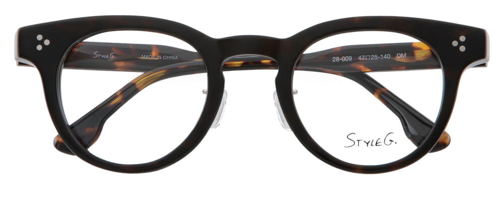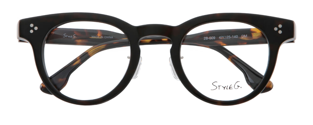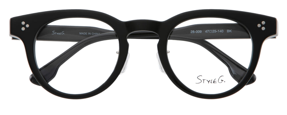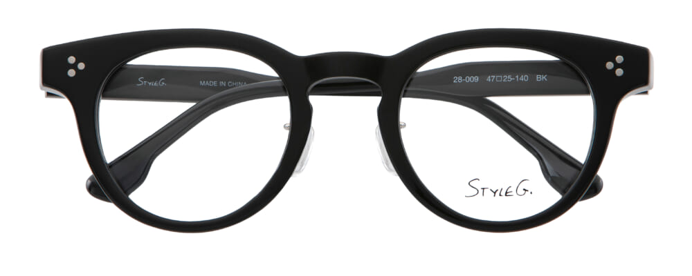 「28-009」は、人気のボストンタイプを採用したカジュアルフレーム。ユニセックスで日常づかいしやすいデザイン。フロント部分には3ピンのスタッツをあしらいアクセントをプラスしています。