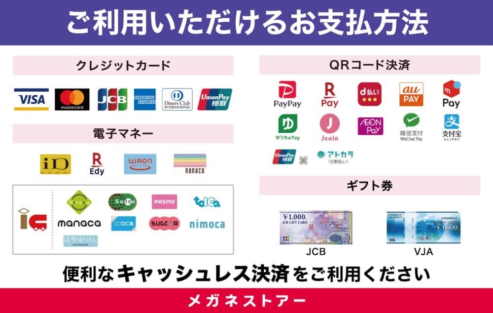 【キャッシュレス決済】一覧│メガネストアー